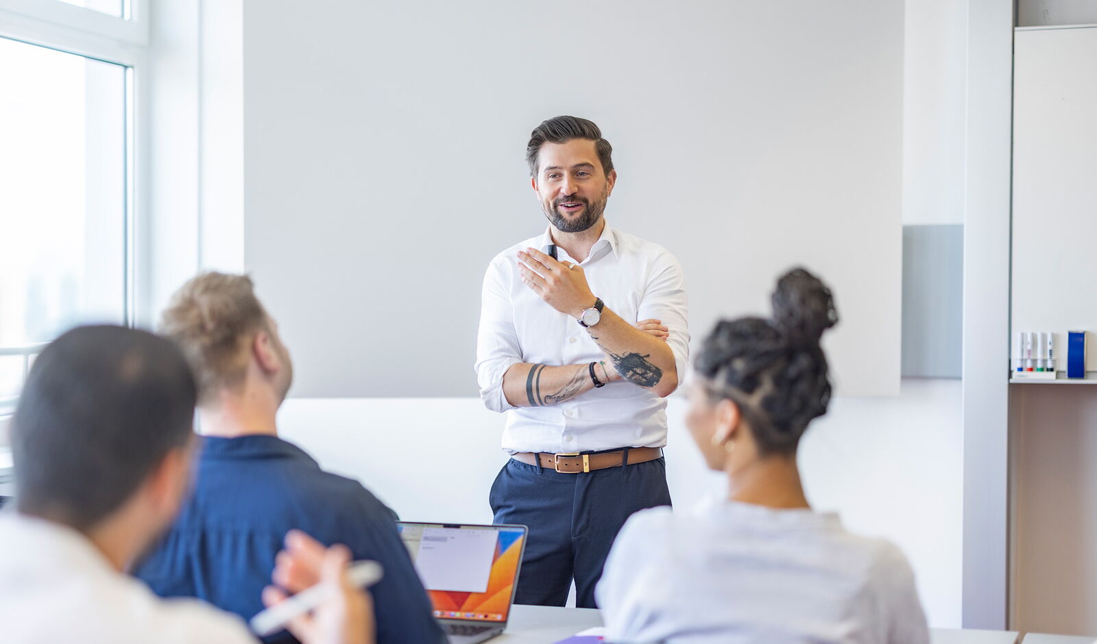 Ein fiktiver Fall be­gleitet die ersten beiden Tage als roter Faden. Am dritten Tag be­arbeiten die Teil­nehmenden aus­schliesslich eigene Unternehmens-Challenges, unterstützt durch Peer-Review und kolle­giales Feed­back.