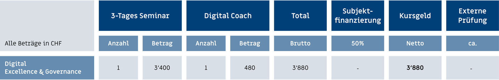 Das 3-Tages-Programm „Digital Excellence & Governance“ schliesst diese Lücke. Es richtet sich an aktuelle und künftige Führungs­kräfte, Bereichsleiter­/innen und Projektleiter­/innen aus allen Ab­teilungen. Im Zentrum steht die Ent­wicklung strategischer und operativer Kom­petenzen für die digitale Trans­formation – mit Design Thinking als didak­tischen Leit­faden und maxi­malem Praxis­bezug.